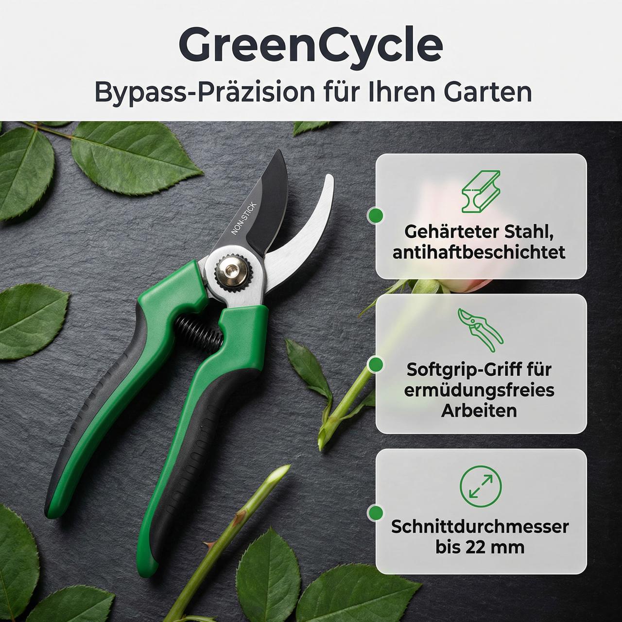 Bypass-Gartenschere für präzises Schneiden von Blumen, Zweigen und Trieben bis 20mm. Ergonomischer Softgrip, Saftrille, antihaftbeschichtete Klinge.